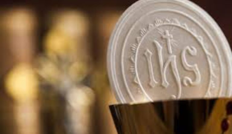 Isus je zaživio ljudski život po Presvetoj Djevici, dakle Ona nam daje i kruh anđela, Presvetu Euharistiju da bi u nama sačuvala novi život koji nam je darovan. Tako sv. German Carigradski kaže: “Znajte da je krilo Bezgrešne Djevice sveti kalež pun Predragocjene Krvi Isusa Krista. Onaj koji pristupa ovoj nebeskoj gozbi može reći sa sv. Augustinom: “Ovdje su Rane moga ljubljenoga Isusa Krista i djevičansko krilo moje dobre Majke Marije. On me napaja svojom predragocjenom Krvlju, a Ona me hrani svojim božanskim mlijekom.”